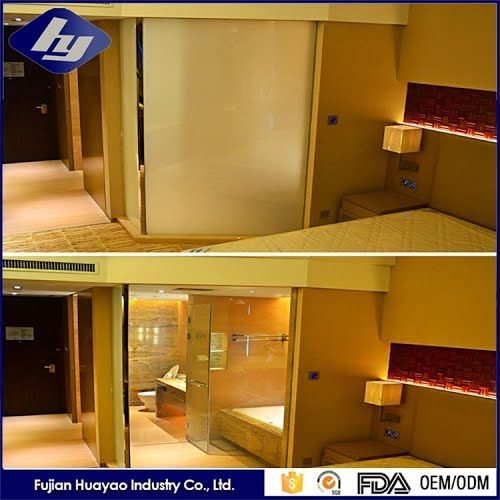 Our switchable glass is manufactured using a special factory process that coats down to glass a non-adhesive, extra transparent version of Intelligent Glass's switchable film. It provides instant privacy whilst maintaining flows of light through and between rooms.