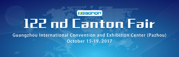 SAONON will be exhibiting at Guangzhou International Convention and Exhibition Center (Pazhou) of 122 nd Canton Fair on October 15-19, 2017. Welcome to visit us at Booth No. 3.1M30-32 of Power Machinery & Electric Power exhibition area.